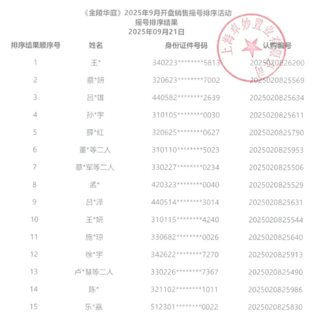 9月21日,上海市黄浦区外滩街道金陵华庭二期开盘,被购房者一扫而光。开盘结束后,舞台中央展示牌打出了上述喜报,台下已准备好庆功蛋糕。