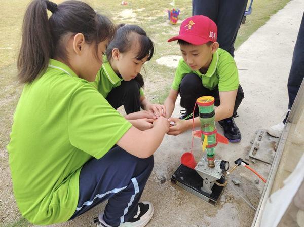 四年级学生动手组装水火箭。南宁市衡阳路小学供图