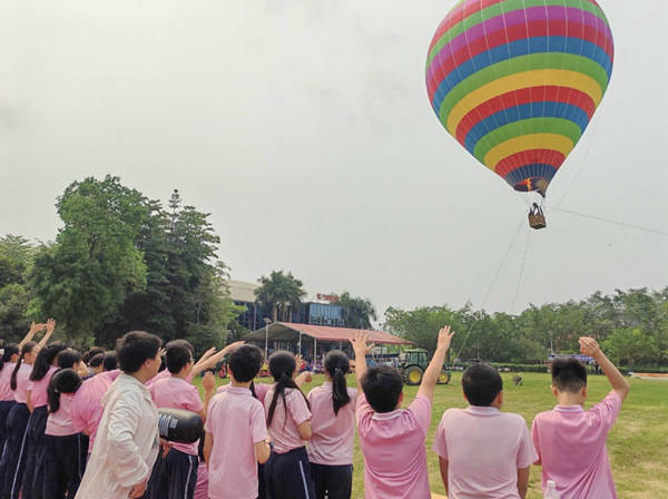 五、六年级的学生则在和美航空基地化身“小小飞行员”,开启了热气球探索之旅。在专业机长讲师的带领下,孩子们学习了热气球的基本原理、结构与组成,亲历了热气球的组装与升空过程,感受空气密度变化带来的神奇现象。
